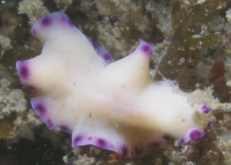 多分コモンウミウシに擬態しているんだと思う。 周辺の点々の感じがそんな雰囲気だ。 水中で見たときはもっと似ていると感じたのだが、写真にしてみるとそうでもないなぁ。