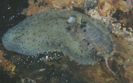 こいつも巻貝の仲間・・・・らしい。 最初見たときは何かわからなかった。もしかしたらタツナミガイの幼体?とか思ったほどだ。動きもそれに似ている。 つうことで、こいつは岩肌を這うのだが、嫌悪感を覚えない動きなのだ。