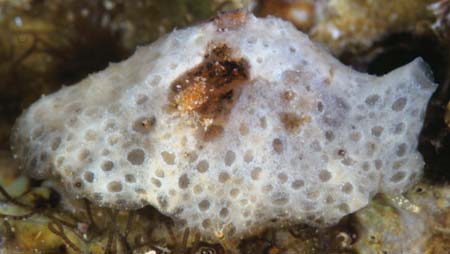 ベッコウマタガイの仲間。 右下に触角があるのが分かるかなあ? 触角の形を見るとウミウシの仲間じゃないのが分かるねぇ。 もっともミノウミウシの仲間の頭触手は、こんな形だけれど。